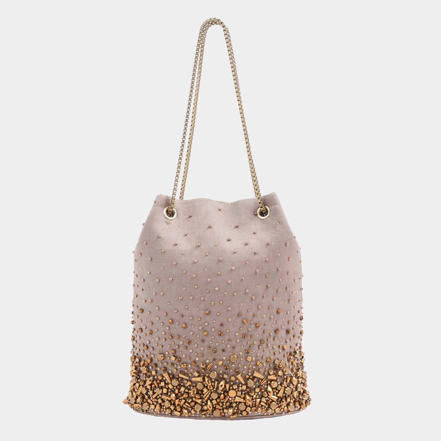 Is It a Butwa? Is it a Potli bag? No, It is a Cristallo Bag! This bag with it’s crunchy crystal and metal elements in gold on gold silk fabric is a must have.