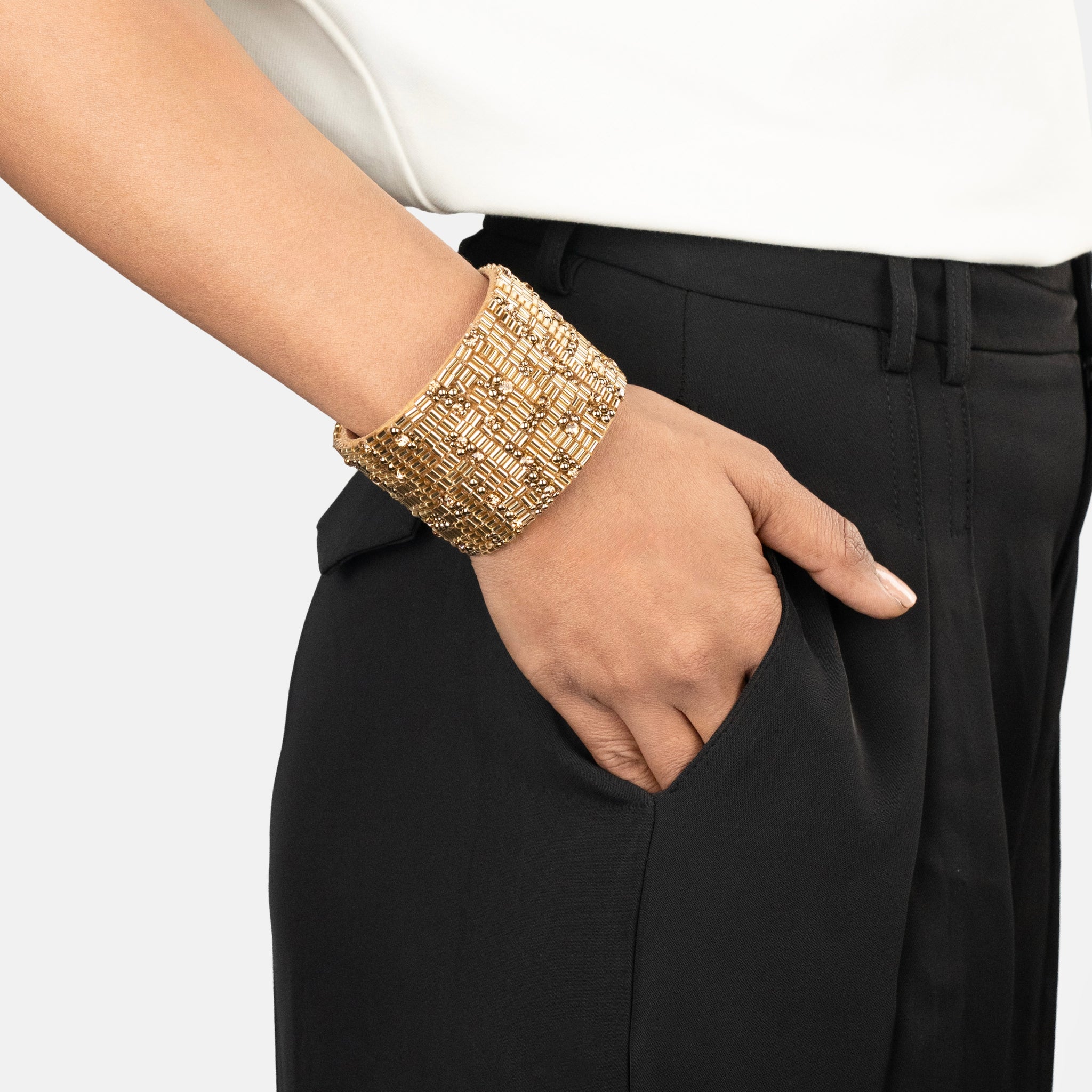 The Razia Cuff in Gold is our statement take on refined craftsmanship and timeless glamour.